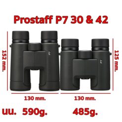 กล้องสองตา Nikon รุ่น Prostaff P7 กล้องที่มีน้ำหนักเบา ขนาดเหมาะมือ มียางหุ้มจับถนัดมือ กันน้ำ 100% ด้วยมุมมองภาพที่กว้าง (62.9˚ สำหรับ 10×42, 62.6˚ สำหรับ 8×30) ทำให้ส่องหาเป้าหมายได้อย่างง่ายและรวดเร็ว อีกทั้งยังเพิ่มระบบการล็อกแหวนปรับแก้สายตา เพื่อป้องกันการหมุนโดยไม่ได้ตั้งใจ การเคลือบเลนส์กับปริซึมแบบไดอิเล็กทริกที่มีการเคลือบแบบหลายชั้นที่ช่วยให้ได้มุมมองภาพที่สดใสและสีที่แม่นยำดูเป็นธรรมชาติ
