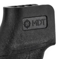 - Grip ergonomics feature a slightly smaller width than MDT’s standard grip with a comfortable palm swell, grooved side profile and flared bottom edge
