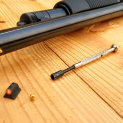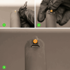 Glues over front bead. Bead must be 0.120”-0.140” in diameter. Suggest Brownells #6 or #26 bead if factory is not of correct size. May require opening up bead hole to larger size by drilling & tapping. Mossberg factory bead with hex base must be replaced. The kit comes with a conversion bead for Mossberg shotguns.