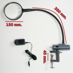 แว่นขยาย Carson ติดโต๊ะ CL-65 ใช้หนีบกับโต๊ะ เลนส์ใหญ่ขยาย 2 เท่า และเลนส์เล็กขยาย 3.5 เท่า พร้อมทั้งไฟ LED ที่ให้ความสว่างสามารถใช้แบตเตอรี่ หรืออะแดปเตอร์สำหรับเสียบไฟบ้าน