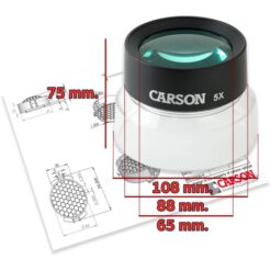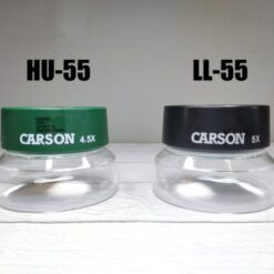 แว่นขยายแบบถ้วย ยี่ห้อ Carson อัตราขยาย 5 เท่า รุ่น LL-55 LumiLoupe เป็นถ้วยขยาย ขนาดใหญ่ ใช้งานง่าย เลนส์แบบ Pre-focused Dual lenses ทำให้เห็นภาพขยายของวัตถุได้คมชัดและภาพสว่าง เพราะส่งผ่านแสงได้ดี ครอบลงบนวัตถุเพื่อดูรายละเอียด ไม่ต้องถือ เหมาะสำหรับการส่องขยายเพื่อดู แมลง พืช แผนที่ และภาพต่างๆ