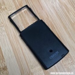 แว่นขยายพับเก็บได้ ยี่ห้อ Carson อัตราขยาย 2 เท่า รุ่น LP-55 LumiPop ทำจากพลาสติกทั้งเลนส์และเคส มีน้ำหนักเบา แต่แข็งแรง สำหรับพกพาติดตัว ขนาดเล็ก