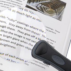 รูปแบบเลนส์ทรงกลม ขนาดใหญ่เส้นผ่าศูนย์กลาง 90 mm (3.5″) และไม่มีขอบ จึใช้งานง่ายไม่มีขอบให้เกะกะสายตา น้ำหนักเบา มาพร้อมไฟหลอด LED ทนทาน ช่วยให้ส่องวัตถุเห็นได้ชัดเจนในตอนแสงน้อย เป็นหนึ่งในแว่นขยายที่ขายดีที่สุดในตลาด USA อย่างต่อเนื่อง ในเซ็ตมาพร้อมกับถุงผ้าที่ตัดเย็บจากผ้าเช็ดเลนส์ เพื่อเก็บไม่ให้เลนส์เป็นรอยและใช้ทำความสะอาดได้ พร้อมถ่านไฟ เหมาะหรับอ่านหนังสือ