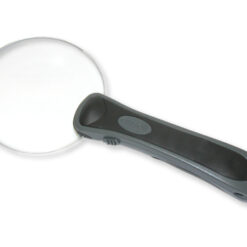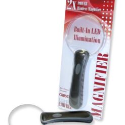 The RM-95 Lighted RimFree™ Magnifier is a great multi-use handheld magnifying glass. Its ergonomic handle and lightweight design make it perfect for use for extended periods of time. The built-in LED light and 90mm (3.5”) RimFree™ crystal-clear acrylic lens will offer a sharp, distortion free viewing in any light. Whether reading news print, a good book or labels and coupons, you’ll find this to be the perfect magnifier for all your needs. In fact, this patented 2x magnifying glass has been a top seller in the US for over a decade. Batteries are included and it comes with a free microfiber case for protection between uses. Also available in a non-lighted version- RimFree™ US Patent D495,726