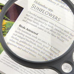 แว่นขยายมือถือ Suregrip อัตราขยาย 2 เท่าจับถนัดมือ พร้อมเลนส์ขยายเจาะ 10x เลนส์อะคริลิคใส นำ้หนักเบา อัตราขยาย 2x ขนาด 5″ น้ำหนักเบากว่าเลนส์แก้ว แถมตกไม่แตก (แต่เป็นรอยง่ายกว่า)