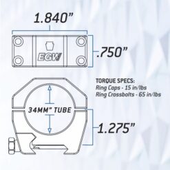 แหวนรัดกล้อง EGW จับราง Picatinny หรือราง Weaver ท่อ 34 มม. ทำจาก ALUMINUM ขากลาง (ความสูง 1.275 นิ้ว วัดจากฐานถึงกลางแหวน) OEGW-62201