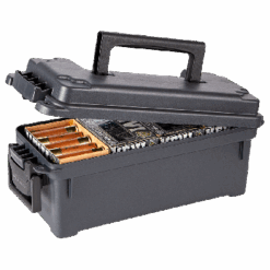 The Field/Ammo Box Compact is an ideal storage solution for shot shells — holding up to 4 shot shell boxes in total. Outside of ammo storage, this field box is a great catchall for other items like tools, electronics and other general storage. Carries easily with a heavy-duty handle, or stays in place with extra security from a lockable latch.