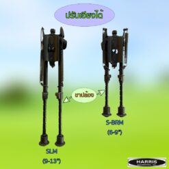 ขาทราย Harris ขนาดความสูง 9-13 นิ้ว ปรับเอียงได้ทั้ง ซ้ายและขวา (Swivel) ตัวขายืดแบบเป็นปล้อง (Leg Notch) ทำให้ปรับความสูงของขาซ้าย/ขวาเท่ากันได้ง่าย โดยในชุดจัดตัว S Lock (Swivel Lock) ของ Caldwell ให้ เสร็จสรรพ ไม่ต้องซื้อเพิ่ม