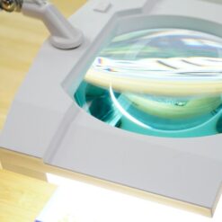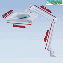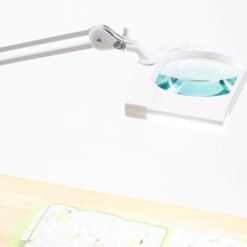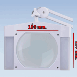 แว่นขยายทรงสี่เหลี่ยมติดโต๊ะ Intbright เลนส์แก้วคุณภาพสูง คมชัดขนาด 189x157mm กำลังขยาย 5 เท่า พร้อมไฟ LED 14W สามารถปรับความสว่างได้ ความสว่างสูงสุด 1200 ลูเมน มาพร้อมอะแดปเตอร์ AC100-240V รับประกัน 1 ปี
