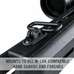 Its base is machined from Mil-Spec anodized aluminum and utilizes a coated steel loop, which accepts up to 1-1/4” webbing. With its compact and low profile design, it provides a minimal footprint, creating more hand guard real estate. Like any other Magpul M-LOK accessory, the M-LOK GI Sling Swivel features recoil / impact mitigation lugs and cammed T-Nuts for proper M-LOK engagement.