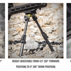 Description: MDT GRND-POD Bipod, M-LOK, Black. The MDT GRND-POD was designed to maximize versatility, as well as cost savings while retaining features known to be important in a precision rifle bipod. The MDT GRND-POD bipod features an adjustable throw lever for Cant tension, 4-locking leg positions, an adjustable height between 4.5″ to 9.0″, and an M-LOK mounting plate. The MDT GRND-POD’s compact and lightweight design, combined with both forward and backward stowing positions, make it a breeze to transport.