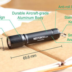 ไฟฉาย Nextorch รุ่น K11 เป็นไฟฉายตัวใหม่ของรุ่น K1 ขนาดพกพา เป็นที่นิยม น้ำหนักเบาเพียง 15.4 กรัมไม่รวมแบตเตอรี่ ขนาดกะทัดรัด รูปทรงทันสมัย ด้วยขนาดเพียง 65.6 มม. เหมาะสำหรับใส่กุญแจ ใช้แบตเตอรี่ AAA ก้อนเดียว K11 มีโหมดความสว่างแยกเป็นสองโหมด Low และ High โดยกำลังไฟออกสูงสุด (High) 100 ลูเมน วิธีการปรับคือ ทำการหมุนเปิดไฟฉายขึ้นมา ถ้าเป็นโหมด Low อยู่เมื่อทำการปิดและเปิดใหม่ ไฟฉายจะเปลี่ยนเป็นโหมด High ครับ ถ้าต้องการโหมดไหนก็แค่ เปิดและปิดเพื่อเปลี่ยนเป็นโหมดที่ต้องการ ตัวเรือนผลิตจากอลูมิเนียมที่มีคุณภาพสูงและสวิทช์แบบหมุน ใช้งานได้ง่าย K11 เหมาะซื้อเป็นของขวัญในโอกาศต่างๆ สำหรับเพื่อนหรือคนสำคัญของคุณ กันน้ำ รับประกัน 5 ปี เมื่อทำการลงทะเบียนผ่านเว็บไซร์ Nextorch หรือเข้าทาง QRCODE ภายในกล่อง