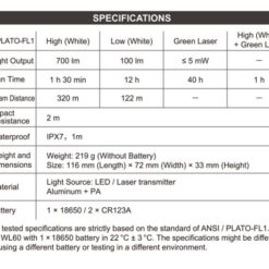 •5mW Green laser for aiming with max light output of 700 Im for lighting