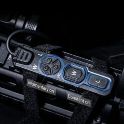 •Tactical remote switch with independent buttons for momentary on, constant on and strobe modes