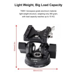 – T6061 aerospace grade aluminum, weighing only 12.7oz(360g). Load capacity reaches as much as 33lb(15Kgs). Suitable for heavy and long telephoto lenses for shooting subjects in motion and bird watching.