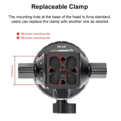 – The mounting hole at the base of the head is Arca standard, users can replace the clamp with another one as desired.