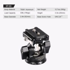 – It’s ideal for telephoto lens with heavy camera, compared with traditional heads, DT-03 is light weight, easy to operate and with high load capacity.