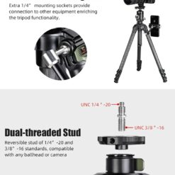 ✪Tripod tubes feature lever-release locks for swift tightening, easy to operate and the tightness of the lever-locks are adjustable.