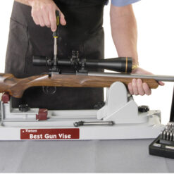 Tipton’s® Best Gun Vise™ is the best tool you can own for working on your firearms. The vise was designed to accommodate the widest possible array of firearms for cleaning, maintenance, or gunsmithing, and is easily configurable to handle bolt-action rifles, break-open shotguns, AR-15’s, and handguns. A central aluminum channel lets the user move individual components to the ideal position for their firearm. Each individual component then adjusts to the perfect position for secure support. The rear base features two adjustable offset clamps for a tight grip on a wide range of buttstock configurations. The Best Gun Vise™ is extremely stiff and is made from high-quality, solvent-resistant material that will stand up to years of hard use.
