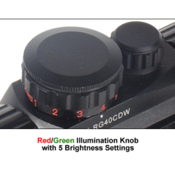 กล้องจุดแดง UTG New Gen R/G Dot (circle ret) SCP-RG40CDQ กล้องจุดแดง UTG รุ่น 3.8″ ท่อ 38 mm. Red/Green Dot จุดแดง/เขึยว 4 MOA ปรับความสว่างได้ 5 ระดับ จับเป้าหมายได้รวดเร็ว ฐานแบบปลดไว และฝาฟลิปทั้งหน้า-หลัง มีฝาปิดปุ่มปรับเส้นเล็ง – OSCP-RG40CDQ
