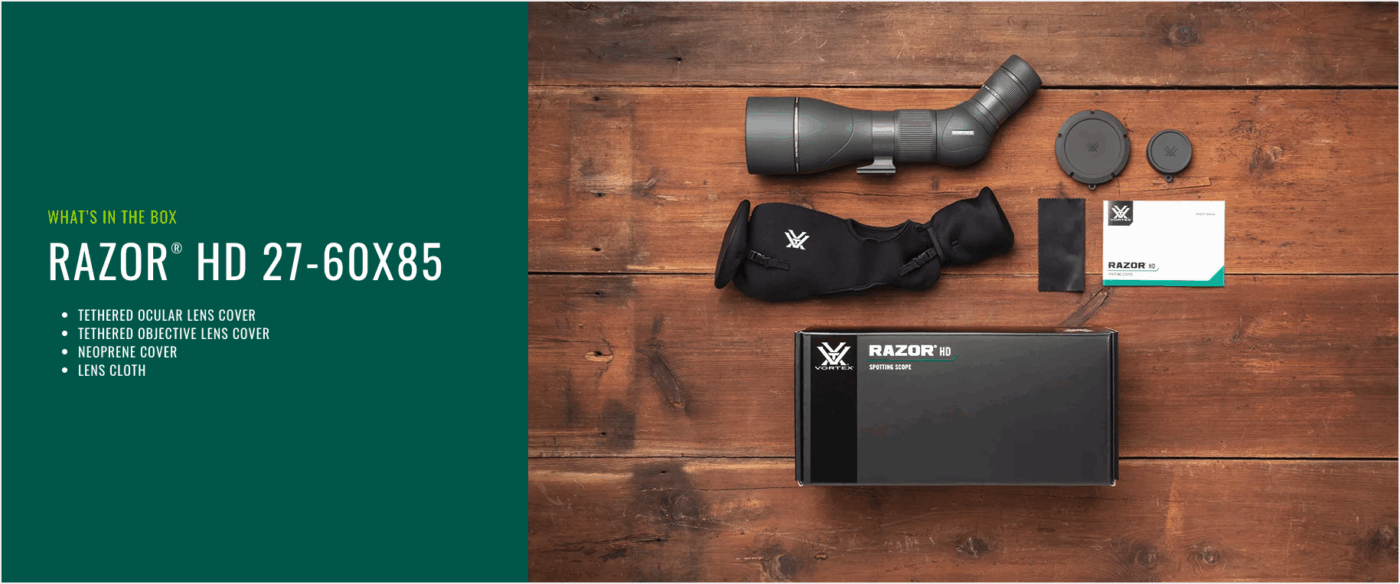 Whether glassing for rams above the tree line or calling shots at the range, Razor® HD gives you the optical edge to spot the smallest details. Unmatched resolution, stunning HD clarity, and superior light transmission bring every growth ring, antler tine, and vapor trail into stunning focus. Meticulously constructed and built tough for extreme conditions, Razor® HD ensures you don’t miss a single moment, whether on a once-in-a-lifetime hunt or in a high-pressure competition.