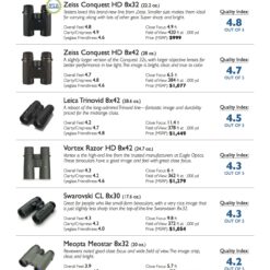 | Zeiss Conquest HD | 8×32 | 10×32 | 8×42 | 10×42 |